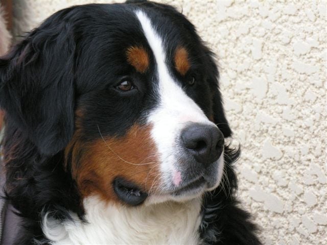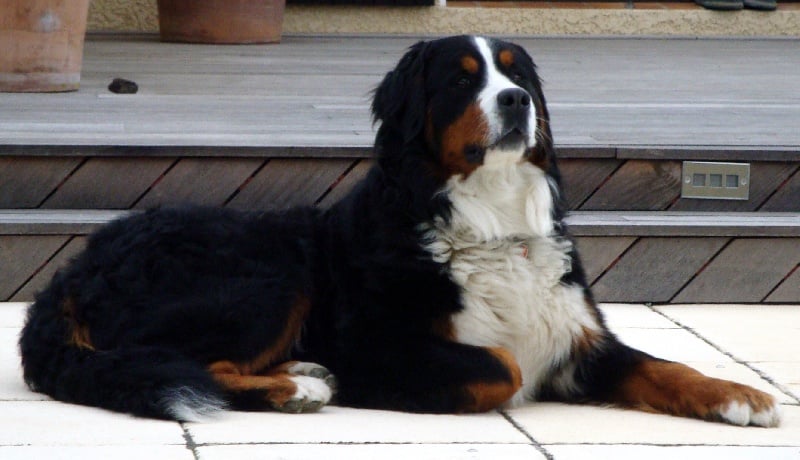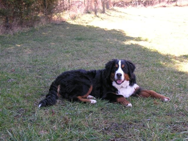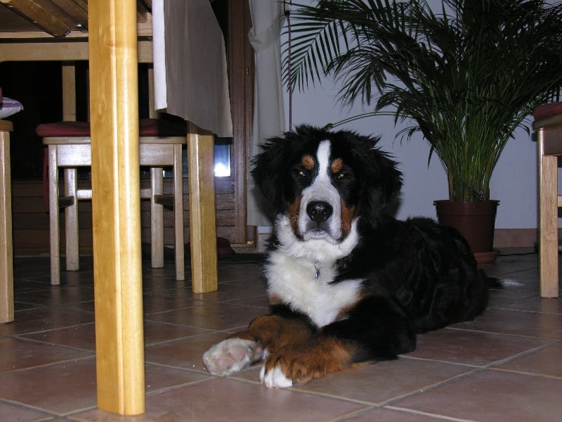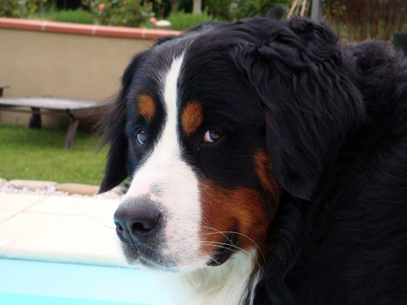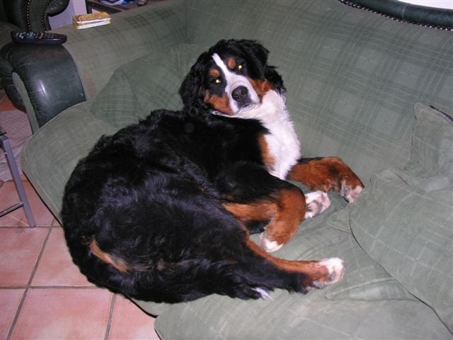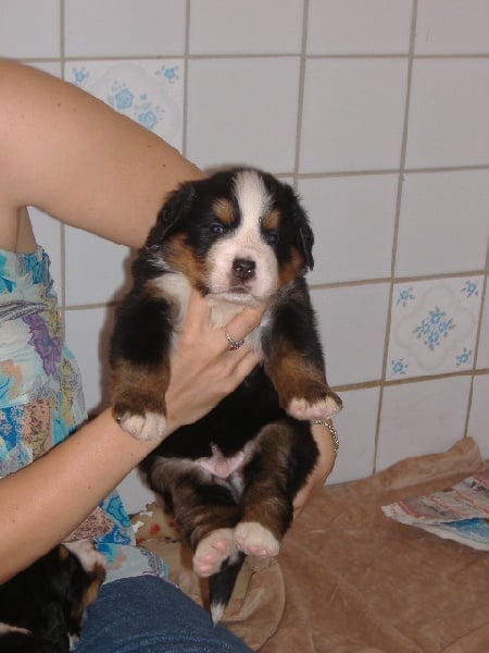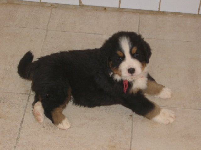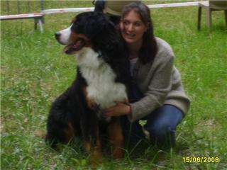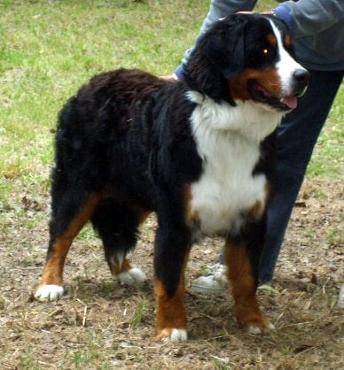 3 ans, bonne taille; bien masculin, bien typé. En condition, jolie tête belle expression, poil légèrement bouclé, Excellente ossature, répartition symétrique des couleurs. En poil. Mouvement facile, le dos pourrait être plus tendu.